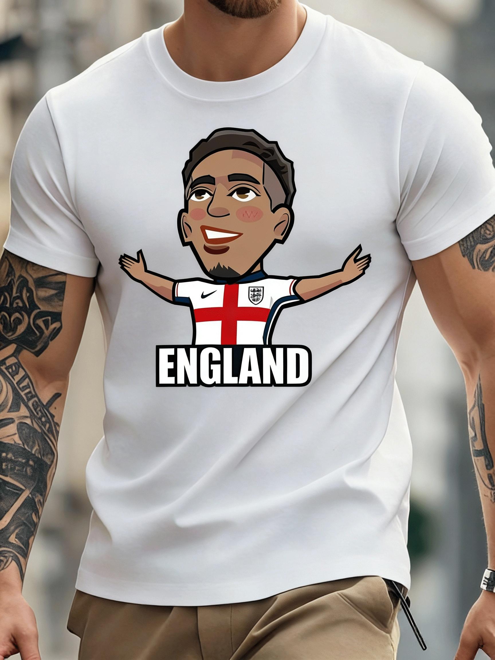 Cartoon Football Player T-Shirt | England Fan Graphic Tee